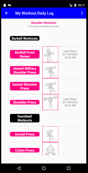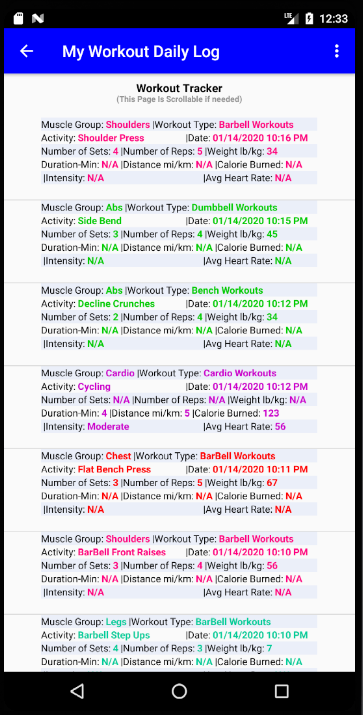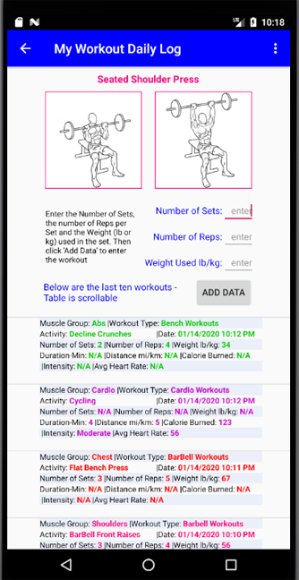 “My Workout Daily Log” – Is a fitness app that suggests and tracks strength training and cardio workouts. This app was built with java using SQLite and is available on the Google Play Store. The IOS version was built with Swift using the Realm Database is currently under development. The purpose of this project was to develop a real world application that would solve a practical problem, and to learn and pratice IOS and Android mobile development.